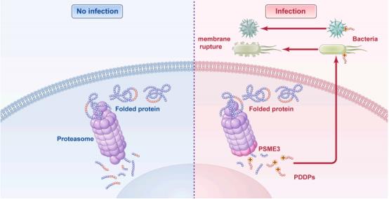 蛋白酶体可通过切割宿主蛋白生成AMPs直接对抗细菌感染